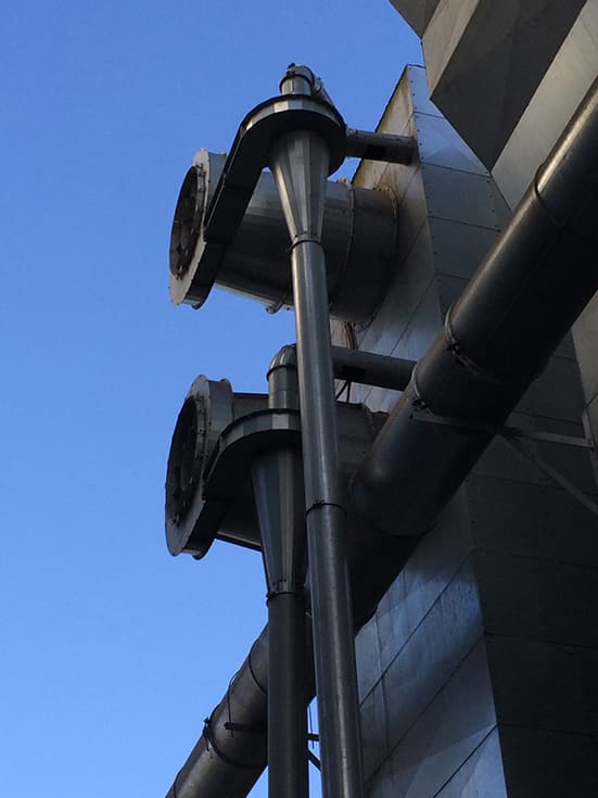 - Частинки можуть бути зібрані у автопричіп, бункер або конструкцію для пилу.