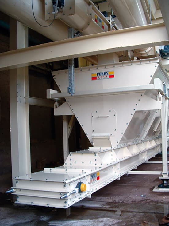 Конвеєри Perry з двома рядами ланцюгів спеціально розроблені для транспортування продуктів з низькою об'ємною вагою і вимагають бережного транспортування при низьких швидкостях ланцюга, при цьому кожна машина адаптована до індивідуальних вимог замовника.