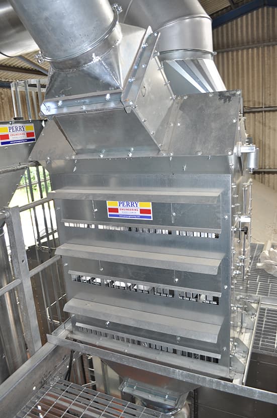 Perry також поставили аспіратор попереднього очищення AC150, який здатний розвивати продуктивність до 150 т/год і був розроблений для видалення пилу, полови та легких частинок із зерна перед його сушінням. На додаток до цього, завдяки високому повітряному потоку, що створюється вентилятором 22 кВт з інверторним управлінням, його можна регулювати для покращення насипної густини зерна, якщо в зразку занадто багато здавлених або дрібних зерен. Це допомагає покращити якість продукту.
