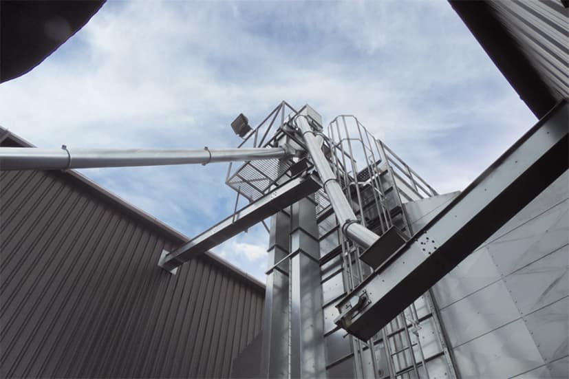 Як тільки зерно проходить через сушарку, воно транспортується на склади двома нахиленими конвеєрами, які відповідають куту нахилу даху, потім зерно подається на верхні конвеєри, які переносять його вниз з вершини складів. Комплекс був змонтований Darren Rouse Technical services, а електрична система була спроектована та змонтована Hadley Electrical Contractors Ltd.