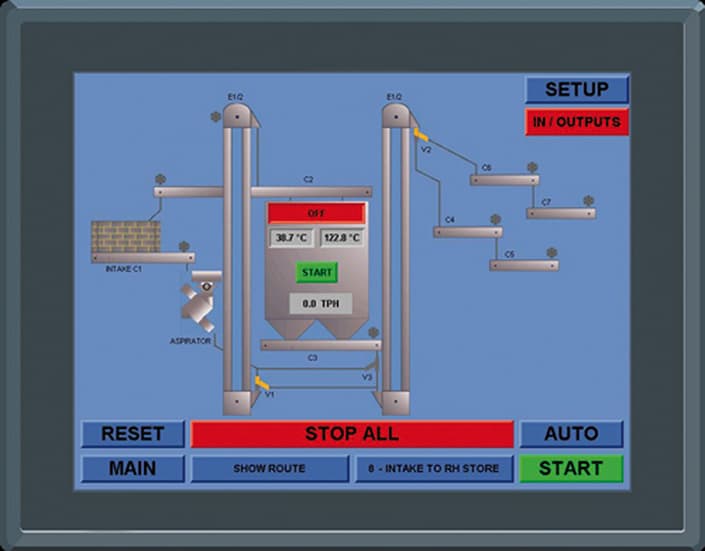 Сушарка була оснащена вентиляторами бічного навісу, щоб дозволити їй вписатися в наявний зазор між двома існуючими будівлями, і вся система контролюється за допомогою ПЛК-панелі Perry для управління комплексом. Ця ПЛК-панель з сенсорним екраном була розроблена та запрограмована інженерами Perry і в стандартній комплектації здатна контролювати до десяти машин на додаток до сушарки. На панелі відображається мнемосхема всього складу, а також доступно кілька автоматичних маршрутів.