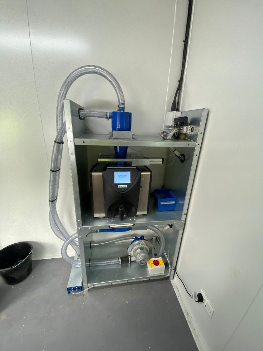 Система використовує пневматичне транспортування для відбору проб зерна з обладнання завантаження та вивантаження сушарки.