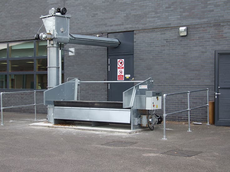 Біоприйом Perry поєднує приймальний бункер з вертикальним шнеком для бесперешкодного переміщення біопалива з місця доставки стандартним самосвалом в зону зберігання біомаси одним натисканням кнопки. Бункер обладнаний легкою в експлуатації кришкою з лебідкою, яка при відкритті діє як захисний щиток, щоб звести до мінімуму просипання палива під час доставки самосвалом. Будь-які закупорки під час доставки можуть бути легко усунені, так як конструкція біоприйому є трубчастою, що дозволяє знімати бічні панелі. Він спроектований таким чином, що вимагає двохручної експлуатації запобіжного вимикача для гарантування постійного знаходження оператора в зоні видимості завальної ями. Біоприйом був розроблений для роботи з рівнем шуму нижче 60 дБ, що робить його однією з найбільш безшумних систем доставки біомаси, доступних на ринку. Біоприйом ідеально підходить для великих комерційних об'єктів, що використовують приблизно 500м³ тріски на рік.