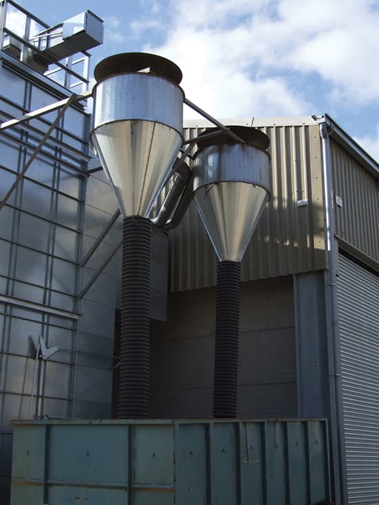- На циклоні може бути розташований вентилятор, тому витяжний повітровод знаходиться під негативним тиском, щоб мінімізувати витік пилу.
