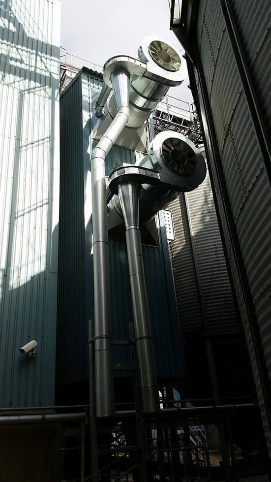 CentriKleens можуть бути встановлені на наші шахтні зерносушарки безперервної дії зі змішаним потоком, стрічкові сушарки та моделі сушарок з осьовими вентиляторами інших виробників *.