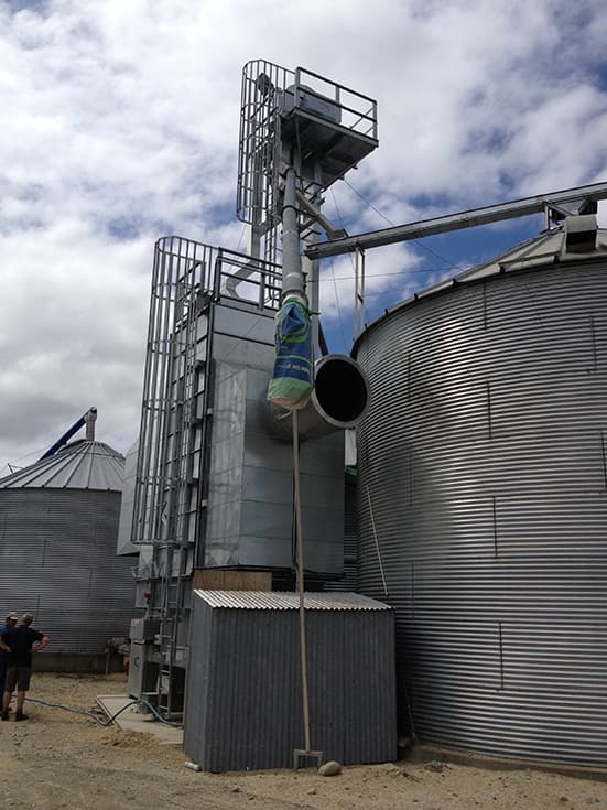 Зерно завантажується у верхню частину зерносушарки та надходить у сушильну шахту через секцію резерву. При роботі на повній потужності вся сушильна шахта заповнена зерном; вивантаження висушеного зерна відбувається через роликовий вивантажувальний пристрій для забезпечення постійного потоку зерна. Це призводить до того, що зерно поступово просувається вниз по сушильній шахті, спочатку контактуючи з гарячим повітрям, а потім з охолоджуючим повітрям у останніх 25-30% шахти. Тоді вивантажене зерно має правильний вміст вологи та температуру для тривалого зберігання.