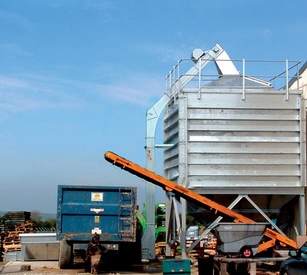 Цей конвеєр ідеально підходить для подачі в башмак норії, щоб уникнути бетонних приямків. Продуктивності варіюються від 60 до 350 т/год при кутах до 60°. Ця машина підходить як для сільськогосподарського, так і для промислового застосування.