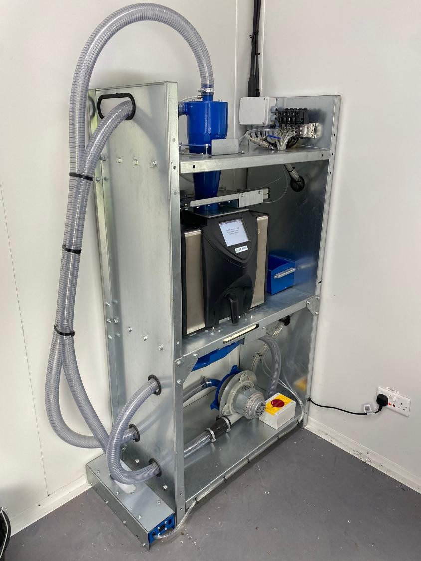 Система використовує пневматичний транспорт для відбору зразків зерна обладнання, яке заповнює та розвантажує сушарку.